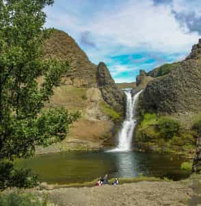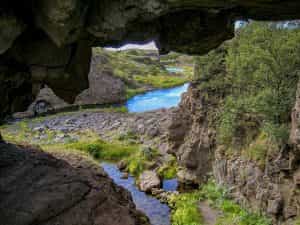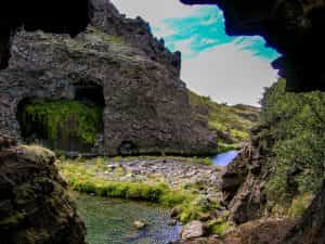 To reach Gjarfoss, you have to take a short, easy hike for the Viking settlement manor at a place called, Stong. The hike is 2.1km, taking you about an hour to complete, including plenty of stops for photos. It is worth walking a little bit further past the waterfall, along the path following the river. As you do, you will encounter some arches formed out of the basalt volcanic rock.